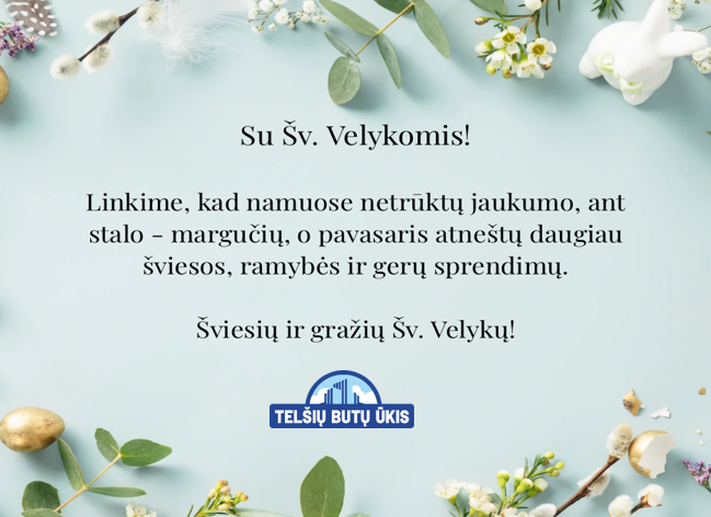 Linkime, kad namuose netrūktų jaukumo, ant stalo - margučių, o pavasaris atneštų daugiau šviesos, ramybės ir gerų sprendimų.